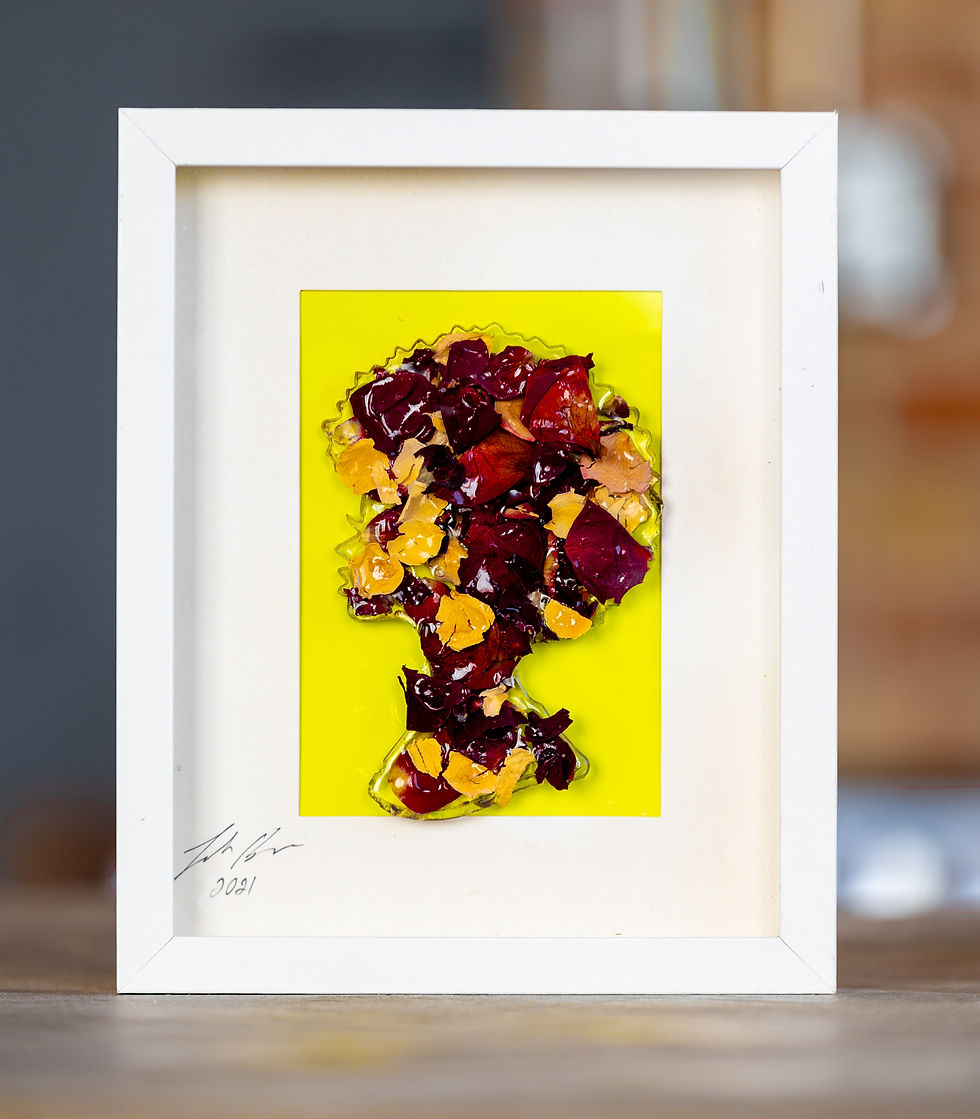 Leah Barber's "Billie Holiday Collection" masterfully captures the rich, soul-stirring essence of the iconic jazz singer through a series of abstract creations. Each piece in the collection uses floral motifs as a central theme, blossoming in vibrant, expressive colors that seem to dance and sway with the rhythm of Holiday's music. These floral elements are not just mere decorations; they are profound symbols representing the cycles of blooming and withering, mirroring the fleeting, yet impactful nature of life itself