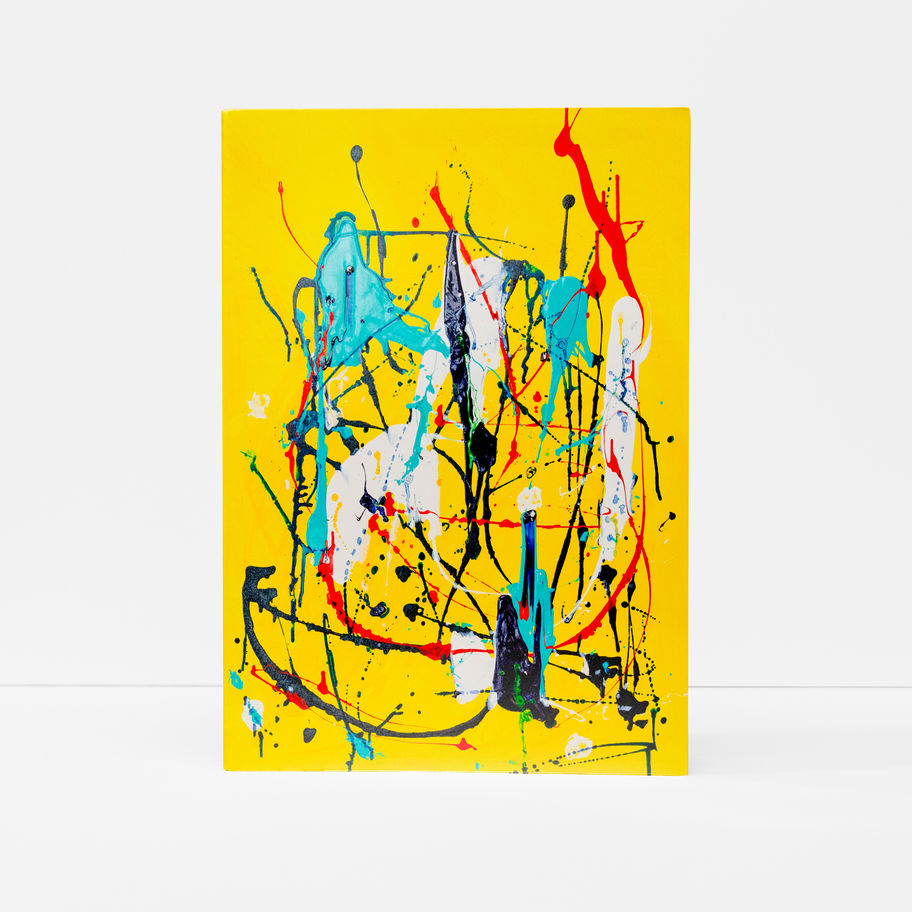 At the heart of this artwork is a luminous yellow background, evoking the warmth and optimism of a sun-drenched day. This joyful hue serves as the perfect canvas for an array of complementary colors that Barber has masterfully integrated into the composition. Splashes of blues, greens, reds, and oranges intermingle, creating a playful and harmonious visual feast that symbolizes hope, happiness, and the promise of new beginnings.